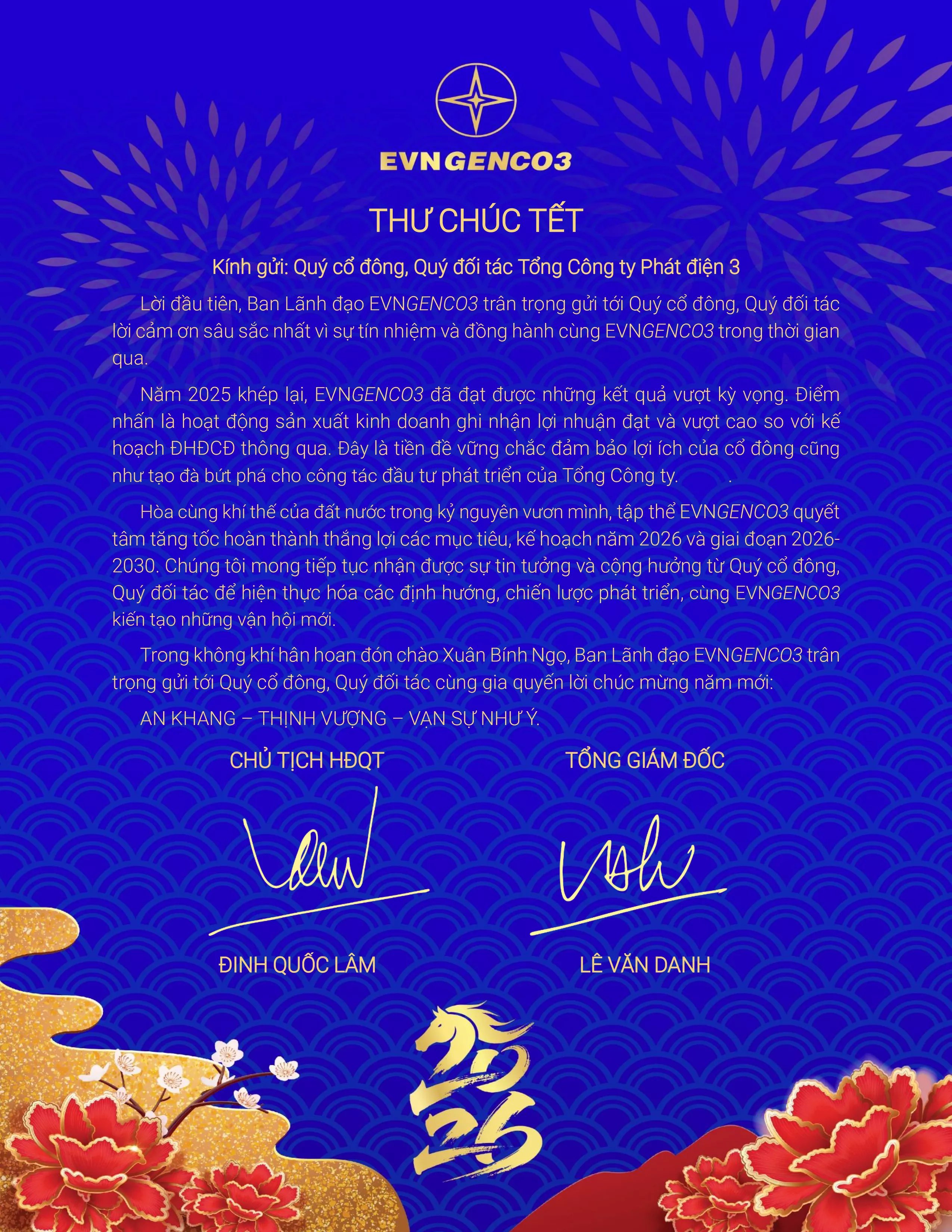 Thư chúc tết gửi Quý cổ đông, Quý đối tác của EVNGENCO3