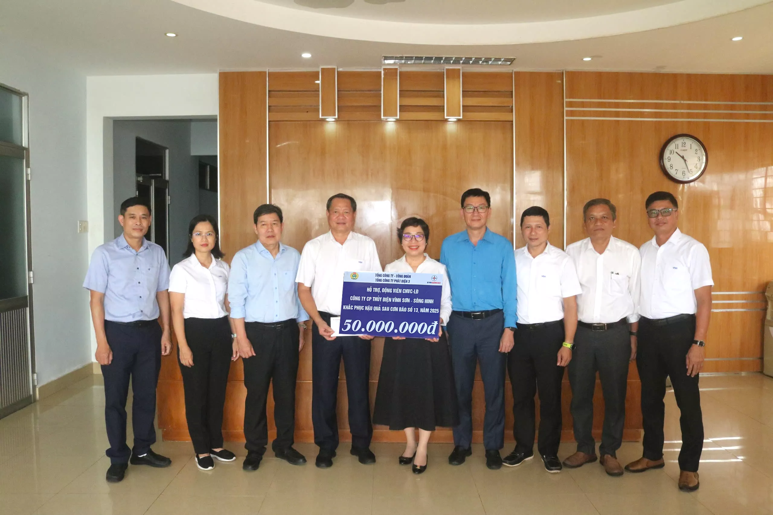 Đồng thời, đoàn công tác của EVNGENCO3 cũng đã đến thăm hỏi, động viên cán bộ, người lao động Công ty Cổ phần Thủy điện Vĩnh Sơn - Sông Hinh (VSH-đơn vị liên kết thuộc Tổng Công ty Phát điện 3) và tặng phần quà trị giá 50 triệu đồng để cùng đơn vị hỗ trợ các gia đình CBCNV khắc phục hậu quả do cơn bão gây ra.