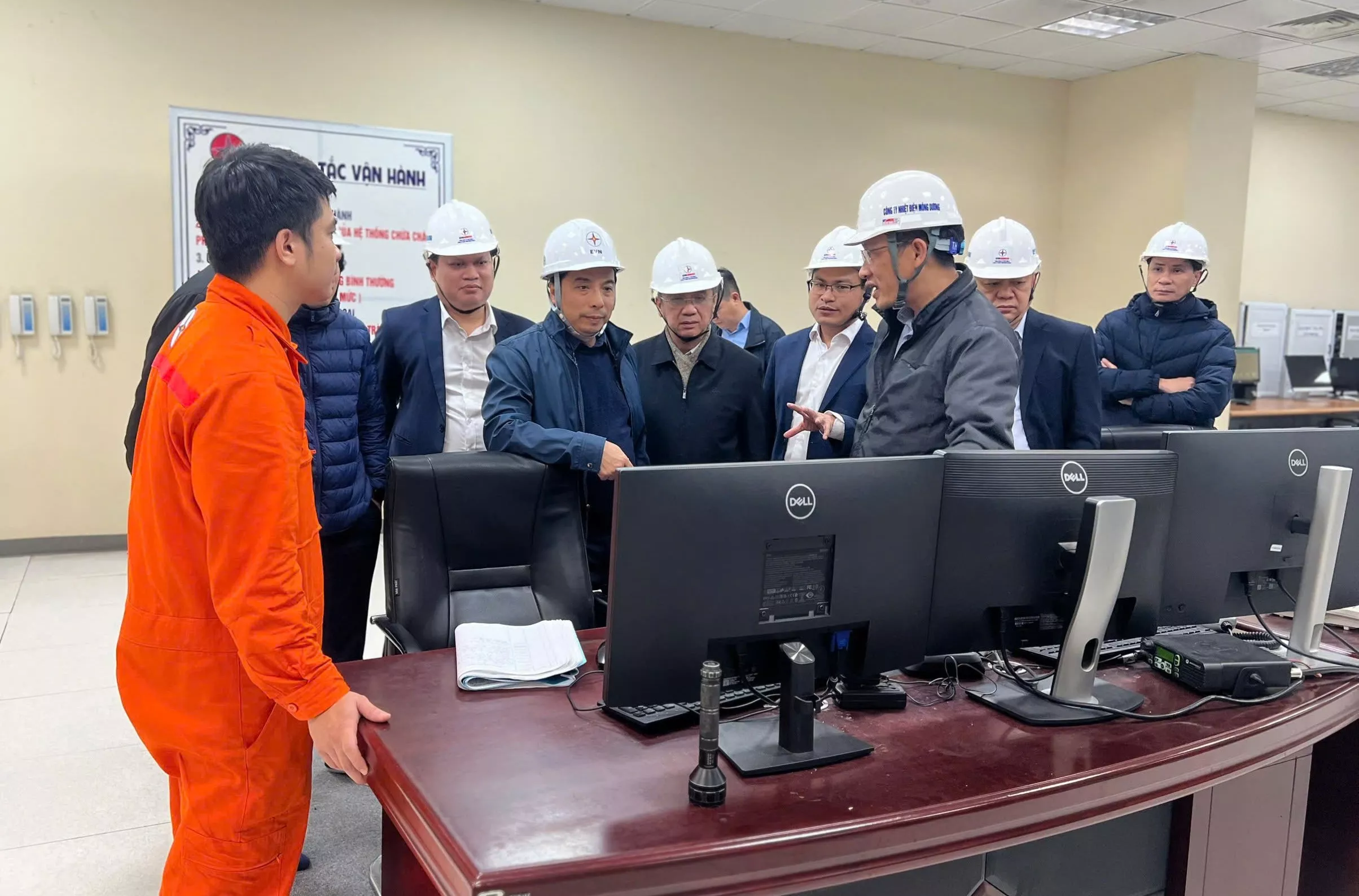 Đoàn công tác EVN kiểm tra công tác vận hành tại Phòng Điều khiển Trung tâm Nhà máy Nhiệt điện Mông Dương 1